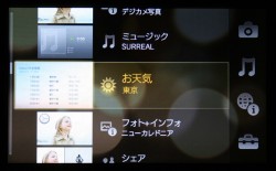 「フレーム」は一種のプレイリストのようなものであり、同じデジカメ写真を表示する場合でも、異なる表示時間や表示エフェクトなどを設定することができる。このフレームはデジカメ画像、音楽ファイルだけでなく、天気予報などのインフォメーションモードなどからも作成できる。天気予報の場合、何段階もエリアを選択していかないと目的のエリアを表示できないので、フレーム機能を使うと便利だ。なお、このフレームは最大20個登録することができる。