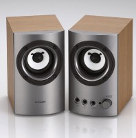 本製品は、木製キャビネットを採用した「木のスピーカー」シリーズの新製品。前面に2つの外部入力端子と1つの外部出力端子を備えており、従来のようにパソコンと接続して使用できるほか、iPodなどの携帯オーディオプレーヤーを手軽に接続できるようになっている。