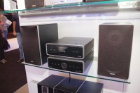 円筒状のユニークなデザインを採用した“CinemaOne”も一体型シアターシステムの新製品。DVD/CDプレーヤーやiPodドック、サブウーファーを本体に搭載しながら、サッカーボールほどのコンパクトなサイズを実現している。カラーバリエーションは白と黒。HDMI端子を備え、最大1080pまでのアプコン出力も可能。薄型テレビと気軽に組み合わせて楽しめる、スタイリッシュなホームシアターシステムとして魅力をアピールしている。