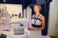 同コーナーにはテレビだけでなく、サウンド系の製品にも面白いコンセプトモデルが展示されている。“WEISSKLANG”は5.1chスピーカーのエンクロージャーを陶器で仕上げたモデル。こちらは女性のデザイナーの手によるものだ。また本体の素材に布や革を用いたポータブルCDプレーヤーも登場。素材に描かれた「再生」「曲送り・戻し」のボタンをタッチして動かせるのがユニークなところ。