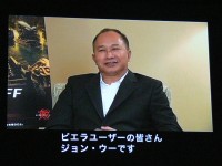 また、新CMでは今秋に公開される三国志をテーマにした話題作映画「レッドクリフ」とコラボレーションしていることも明かされた。映画さながらのシチュエーションで小雪さんがワイヤーアクションに挑戦するという内容で、会場ではレッドクリフを制作したジョン・ウー監督からのビデオメッセージも放映された。