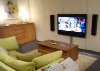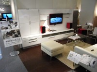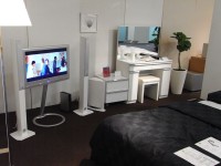 今回のインテリア展示においては「壁寄せ」「壁掛け」「フロアスタンド」といったテレビ設置スタイルに加え、「リビング」「ダイニング」「書斎」「ベッドルーム」といったシアタールーム設定を掛け合わせてシステムプランを構築。プランに選ばれたテレビ、オーディオシステムは国内初の展示商品も含まれ、AVファンも唸るラインナップとなった。