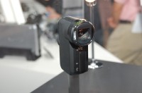 会場の一角には、“Everio”のラインナップにはない新型モデルが展示されている。こちらは「より手軽に楽しむデジタルムービー」を提案するコンセプトモデルとのこと。ブラックを基調としたコンパクトでスタイリッシュなデザインは30代の男性ユーザーをターゲットにしており、SDカードを記録媒体にして動画や静止画を気軽に撮影して楽しめる“パーソナルユース”のモデルとして訴求したい(展示説明員)とのこと。横型の試作機については撮影可能な実機によるデモが行われていたので、近い将来の商品化にも期待したいところだ。