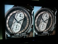 デモ映像は、腕時計のアップや織物など、SD映像では大画面表示が厳しいようなソースだが、「高度映像処理技術」の適用後は、たしかにHDとして通じるほどの立体感ある映像になる。イメージとしては、SDからのアップコンバート映像から、特有のぼやけ感を徹底して排除したような映像で、やや柔らかなHD映像、といった印象だ。アナログ放送のVHSなどでも効果があることを考えると、なかなか有用な技術となりそうだ。