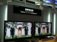 この秋の「高解像度化」技術の先駆けとなったのが、東芝REGZAシリーズが搭載する「超解像」技術だ。同社展示ブースでは、2009年秋発売のCell TVの超解像技術も紹介されていた。