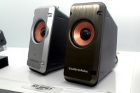 直径34mmのスピーカーユニット2基を搭載した、アンプ内蔵のバスレフ型デスクトップスピーカー。アンプの最大出力は800mW+800mWで、再生周波数帯域は130Hz〜20kHz。こちらもフロントバッフルにアルミを使用している。