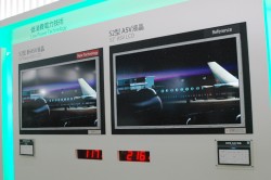 また、液晶の透過率を高めることで消費電力を削減した新ASV液晶も登場した。こちらは液晶画素内の格子部分を改良したほか、ガラスなどの部品や設計を最適化。同型の従来製品と比較し約半分の消費電力を実現している。本製品はまだ参考出展だが、同社説明員によれば「1年以内には製品化したいと考えている」とのことだ。