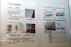 目玉はなんと言っても同社独自開発のPTA(プラズマチューブアレイ)方式による大画面フィルム型ディスプレイ「シプラ」。幅3m×高さ1m、125型の大画面ながら、表示部の厚さは1m、質量3.6kgと非常に軽量だ。画素数は960×360となる。
