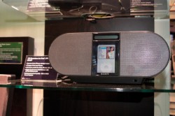 また、国内では発売されていないが、北米ではiPod対応製品が充実している。ブース内にも「Made for iPod」コーナーが設けられ、コンパクトミュージックシステム「CMT-LX20i」などを紹介。さらに新製品として、iPodドックを搭載したクロックラジオ「ICFC7iP」も2月に70ドル程度で発売する予定だ。