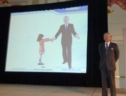 プレスカンファレンスには、カシオ計算機(株) 代表取締役社長の樫尾和雄氏らが登壇。世界初のデジタルカメラ開発や薄型コンパクト技術、ハイスピード技術など、これまでの同社の進化を振り返った上で「最新技術と新しい提案を持つデジタルカメラを誕生させた」と、ハイスピードデジタルカメラなどの新モデルを披露した。