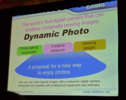 また代表取締役社長の樫尾氏自らが、新モデル「EX-S12」「EX-Z270」「EX-Z400」に搭載されている新機能「Dynamic Photo」の実演デモを披露。