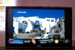 プレスカンファレンスで公開された、同社の新たなネットワークへの取り組みについてもデモが行われた。一つは「Widget Channel」というもので、Yahoo!やIntelが展開している「TVウィジェット」を表示し、ニュース、天気予報、株価などの情報などのほか、ネット動画の視聴も可能とするもの。同種の機能はソニーやサムスン、LG電子など複数の企業が提案しており、今後続々と商品化されるものと予想される。