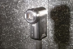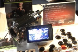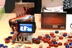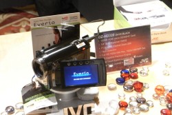 まず入り口に大きく並べられていたのが、日本でも豊富なラインアップを誇るビデオカメラ「Everio」だ。今年の春に投入されるモデルは、フルHDカム3機種とSDカム5機種の合計8機種が発表された。