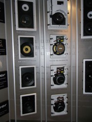 さらに、オーディオのコーナーではCEATEC JAPAN 2008でも展示されていたが、CRTドライバーテクノロジーを搭載した埋め込みスピーカーが展示されていた。ELITE EXシリーズ、Pioneer CSTシリーズ、Pioneer Customシリーズ全16製品、サブウーファー4製品が見られた。価格は、Pioneer S-IC631-LRがペア365ドルと一番お求めやすく、Elite EXシリーズ S-IW691Lがペア1999ドルと一番高価なものになっている。このようにフラグシップモデルでさえ、1本約1000ドル程度とコストパフォーマンスに優れるところが埋め込みスピーカーが指示される理由の一つだ。