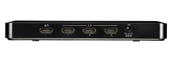 本製品は、HDMI入力端子を4系統装備したHDMIセレクター。端子は背面に3基、前面に1基という配置で、ハイビジョン対応ビデオカメラやゲーム機を接続しやすいよう配慮されている。なお、HDMI出力端子は背面に1基装備している。