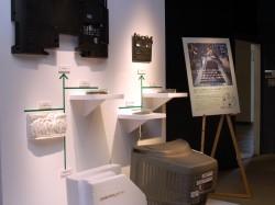 HCFLおよびエコパネルに関する説明会場では、昨日発表された技術特徴を改めて説明すると共に、同社のリサイクルについての取り組みについても説明。回収された廃棄品や梱包材を新たな製品の部材の原料としてリサイクルしていることなどに触れ、生産段階でもエコに配慮していることをアピールした。