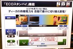 省エネ機能はZ/Vシリーズと同等。VIERAの使用状況に応じ、接続した機器の電源を自動でオフにする「こまめにオフ」機能を新たに搭載。また、「こまめにオフ」とも連動する省エネ機能「ECOスタンバイ」機能も搭載した。ECOスタンバイは、VIERAの電源に連動し、自動で接続したDIGAの待機電力モードを最小に切り替え、節電することができる。