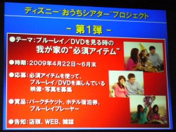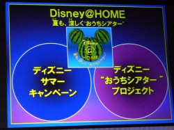 さらに、「Disney @ HOME 夏も、涼しく“おうちシアター”」戦略についても言及。「ディズニー“おうちシアター”プロジェクト」の一環として、ユーザーが家でBD・DVDを楽しんでいる映像や写真を募集し優秀作品に賞品をプレゼントするキャンペーンなどを行うことを発表した。