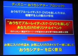 「録画機能のことばかりでなく、高画質・高音質のソフトを家庭で楽しめることをもっと訴求して欲しい」とハードメーカーの戦略について意見し、「我々ソフトメーカーはラインナップの充実や楽しみ方の訴求がもっと必要と感じている」と、ともに努力しながらBD市場を拡大させることの重要性を指摘した。「ディズニーとしても、できる限りのタイトルのBD化を進めていく」と今後の方向性についても語り、説明会を締めくくった。