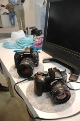同社のデジタル一眼「SD14」は、光の三原色であるRGB全色を3層で取り込める“ダイレクトイメージセンサー”の搭載が話題を呼んだが、本機の系譜に連なるであろう新製品「SD15」が出展された。今回のイベント段階ではまだ「本年発売予定であること」と、また従来から公表済みである「画像処理エンジン“TRUEII”とダイレクトイメージセンサーを搭載予定であること」以外に具体的な仕様などについては公開されていなかった。他には1,400万画素のハイエンドコンパクト機「DP2」のタッチ&トライに人気が集まっていた。