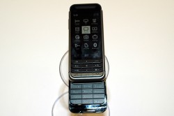 こちらは2002年に発表した“au design project”のコンセプトモデル「Grappa 002」が進化した、「Grappa 2009」とも言えるモデルとのこと。スライドボディを採用し、チタン化合物を薄膜コーティングしたステンレスフレームが筐体サイドを縁どる。キーボタンはアルミ製で、傾斜をつけたスラントキーとすることで押しやすさを向上させた。