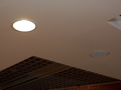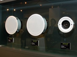 「迷惑レススピーカー ゾーン」では埋め込み型スピーカー3種の特徴を説明。スピーカー径200mmの2ウェイスピーカー「S-ICH200」、同じく200mm径で防滴仕様の「S-ICH200D」、そして125mm径の「S-ICH125」という3機種を、特徴など解説するパネルとともに展示している。