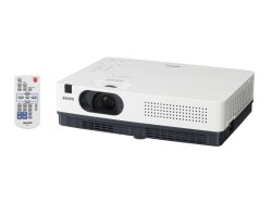 ●方式:3原色液晶シャッター投映方式 ●液晶パネル:0.55型×3枚(アスペクト比4:3)、786,432画素(1024×768)×3枚 ●光源:220W ●コントラスト:500対1 ●明るさ:2,200lm ●消費電力:212W(ランプモード) ●待機消費電力:0.4W(スタンドバイモード:エコ) ●外形寸法:333.5W×85.2H×247.0Dmm ●質量:2.5kg