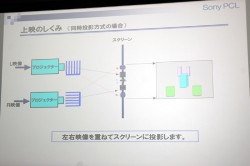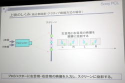 本日は、「CineLaPista」でソニーPCLについての説明と3D映像試写が行われた。ソニーPCL(株)代表取締役 執行役員社長の毛塚善文氏が登壇。1988年にアナログ方式の3D撮影・編集業務を開始して以来、FIFAワールドカップでのHD3面・バーチャルスタジアム伝送実験(2002)や、愛知万博でのレーザードリームシアター「2005 our planet」(2005)、そして昨夏の「美ら海水族館3D」などさまざまな特殊映像制作を行ってきた実績を説明した。毛塚氏は「映画をはじめとした映像のデジタル化、そして3D映像への動きが高まっている。国内の3Dシアターの数も、今年さらに増えるだろう。我々は今回導入した新システムにより3D/4Kコンテンツ制作力を強化し、撮影からパッケージ化までトータルの技術体制を整えていく」との考えを述べた。