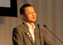 (社)電子情報技術産業協会(JEITA) 大坪文雄氏(社)電子情報技術産業協会(JEITA)会長の大坪文雄氏は、「地デジへの完全移行は、新たな電波の有効利用がより便利で安全な社会の実践に向けて期待されている事項でもあり、国の重要な政策課題。我々メーカーも使命感を持って取り組んでいる。本年政府にはエコポイント政策やスクール・ニューディール政策により、地デジ受信機器導入に弾みをつけてもらった。これをバネに機器メーカーとしてより優れた機器の開発や普及活動に、いっそうの努力を重ねて実施していきたい」と述べた。