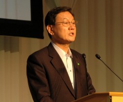 日本放送協会 今井義典氏日本放送協会 副会長の今井義典氏は、「NHKでは全職員を挙げて地デジ完全移行に向けて取り組んでいく。特にこれからはひとり暮らしの高齢者など情報の届きにくい方々への重点的な取り組みが不可欠。また地域によって認識・移行の差が生じていることも問題。これまでの全国放送での啓蒙活動に加え、地方の放送局ごとにその地域の状況に応じた内容の放送を行い、対応していく」と述べた。