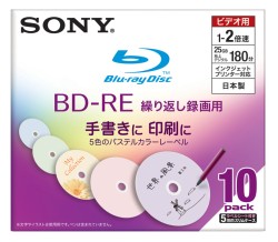 ソニー、「パステルカラーレーベル」採用の録画用BDディスクを発売