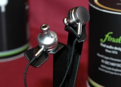 通常のイヤホンと同じくシリコンイヤーピースを装着して試聴するタイプだが、付属のイヤーピースには気孔を設けるなどシリコン素材の振動を極力抑制するよう工夫されている。