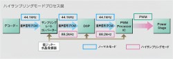 Z10はiPodのデジタル入力にいちはやく対応したのも特徴です。デジタル入力非対応機では、音質に大きく関わる「DAC回路」(デジタルデータをアナログ信号に変換する回路)と「アナログ出力回路」(アナログ信号を適正な出力レベルに整える回路)を、iPod内蔵のものを使わなくてはなりません。しかしZ10は、iPodから取り込んだデジタル信号を、新開発のPWMやデジタルアンプを使ってデジタルのまま処理。そのため劣化が少なくよりピュアな音を楽しめるのです。音源をWAVやAIFF、Apple LosslessなどのロスレスコーデックでiPodに取り込んでおけば、魅力をそのまま味わうことができます。