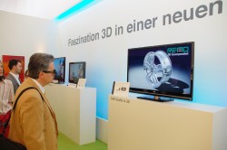 IFA2009のブースでは、DLA-HD950を2台スタック投写した3Dデモンストレーションを特別展示ブースで展開。隣接する3D液晶モニター「GD-463D10」(関連ニュース)の参考デモ展示ともに、来場者が長蛇の列をつくっている。