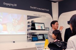 そのほか、有機ELテレビは14.1/31型のフルHDモデルを出展。3D映像表示機器としては、メガネなし/有り両方の方式によるディスプレイと、プロジェクターを用意。メガネなしモデルはさまざまな場所から見ても立体視を得られるよう設計しているとのこと。家庭での視聴というよりは、公共の場での使用を想定しているようだ。実際に見てみると、技術的にこなれた印象。メガネ無しの3Dディスプレイは不自然な映像のものが多かったが、本機は割合自然な立体視を得ることができた。