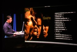 続いてiTunesの説明に移ったジョブズ氏は、新機能の「Genius Mix」を紹介。Geniusがライブラリーを自動的に探して相性のいい曲を組み合わせ、最大12個のGenius Mixを作成するというもので、ジョブズ氏は「まるでDJやラジオ局のようなもの」とその利便性を強調。またiPod/iPhoneとのシンク機能の向上にも触れ、「自分で選択したアーティストやジャンルだけをシンクしたり、フォルダーやアルバム単位でシンクしたりすることもできる」と新機能を紹介した。