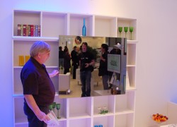 テレビのデザインや機能面では日本市場と欧州市場の違いが今回も浮き彫りになった。スリムな本体を志向する動きと、設置スタイルのバリエーションの広さは欧州の方がかなり先行している一方、HDD内蔵やHDMIリンク機能がそれほど注目されていないのは、録画機能に対する注目度が低い欧州地域ならではの特徴である。薄型モデルでは32型液晶テレビを鏡に組み込んだビクターの展示が目を引き、壁掛け需要の加速を期待させた。欧州ではテレビの設置スタイルが多様で、デザイン志向が強いことが特徴だ。日本で人気のあるラックシアターはドイツではあまり関心を集めることはないが、壁掛け設置や静止画を表示するピクチャー仕様には根強い人気があり、今年は昨年以上に多くの展示が見られた。