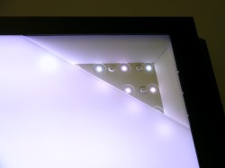 バックライトには白色LEDを搭載した。バックライトモジュールはシャープの内製品を採用している。バックライトのエリア制御(ローカルディミング)には対応していないが、同社では「エリア制御では不自然な映像になってしまうこともある。新パネルを搭載したことで、エリア制御を行わなくても十分な画質を実現できた」と説明する。なお、テレビコントラスト比は200万対1となる。