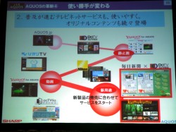 そのほかネットワーク機能も充実。「Yahoo! JAPAN for AQUOS 動画チャンネル」や「アクトビラ ビデオ・フル」「ひかりTV」「毎日新聞×DoTV」(関連ニュース)などに対応し、同社独自のプラットフォーム「Exシステム」により、フルHD解像度のサービスも快適な速度で操作することができる。
