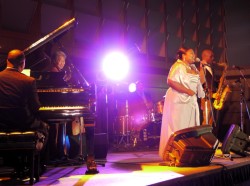 ティファニーはステージに上がると、「ムーン・リヴァー」「ス・ワンダフル」「ナイト・アンド・デイ」などのスタンダードナンバーを中心に、美しい歌声を次々に披露。バックをもりたてる各プレーヤーとの息もぴったりと合い、約1時間の演奏はあっという間に終わった。