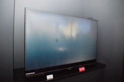 三菱電機も3Dシアターを用意した。同社が北米地域で既に販売をしているDLPリアプロジェクションテレビによるデモを見ることができる。本製品は8月に同社がディーラーとマスコミ限定で開催した新商品内覧会にも出展されたもので(関連ニュース)、会場には82V/60V型のテレビが用意され、来場者は配布されるアクティブシャッター方式の3Dメガネで視聴が楽しめる。またこちらは本日撮影が禁止されていたため写真で紹介することができなかったが、北米で発売されている、レーザー光源を用いた65V型の3D対応DLPリアプロジェクションテレビ「L65-A90」も出展されている。ただし、本日は2D映像によるデモのみが行われていたため、3D映像の表示性能を確認することはできなかった。