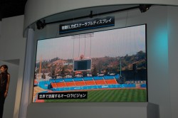 その他、独自の超解像技術を採用した画像処理LSI「ギガクリア・エンジン」を搭載する“VISEO”シリーズの液晶モニター試作機も出展されていたが、こちらも本日は撮影不可のため写真をご紹介することはできない。試作機は24.1型のマルチメディアディスプレイ。独自の動画ブレ補正技術「MP ENGINE II」に加えて、新たに超解像処理技術が搭載される。超解像処理の効果設定も10段階+OFFから細かく選択することが可能。展示説明員によれば「そう遠くないタイミングで商品化の発表を予定している」という。