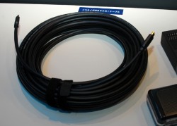 「クオリティを重視するとHDMIケーブルでの伝送は30mが限界」(同社説明員)ということだが、HDMI光伝送システムを使用すれば最長300mまで1芯のファイバーケーブルで配線が可能となる。480p/720p/1080i/1080p信号、最高1,920×1,200まで対応している。