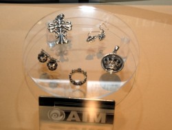 ショーケースの中にはケーブルのほかにジュエリーショップさながらの高級感のあるアクセサリーも展示されているが、中には「Rシリーズ(1m)の中の純銀を取り出して製作した」という驚きの指輪も置かれていた。