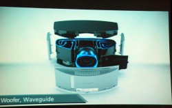 本機の開発にあたっては、最高の音質を実現する他にも、筐体を可能な限り小さくすること、エレガンスなデザインにすることが条件となったという。またコンパクトな筐体ながらも類い希な重低音再生を実現するために「本機のために1から新規開発した技術も惜しみなく注ぎ込まれている」という。また独自の「Wave Guide Speaker Technology」についても、より短い管のサイズで従来機を超える低音再生が可能になったとし、製品の特長についてアピールした。