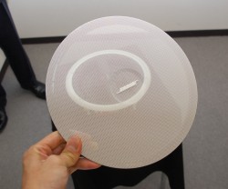 本機は同社初のエンクロージャーレス筐体採用の天井埋め込み型スピーカー。独自の“Stereo Everywhere”技術を採用し、どのリスニングエリアでも均一なステレオ再生音場を実現した点が特徴となる。