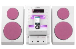 「UX-LP7」は、フロントパネルを押すだけでiPodドックのオープン、収納ができる「ワンプッシュドック」を搭載したモデル。本体カラーはピンクのみ。映像出力端子を装備しており、iPod内の映像を出力することもできる。
