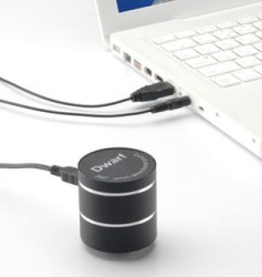 直販サイトの販売価格は4,980円(税込)。本体の底部を机の上などに接触するかたちで置くことにより、対象物を振動板にして音がでる方式を採用している。同社では「フラットな面であれば高いクオリティで音が出せる」と説明しており、木材/ガラス/金属/段ボールなどを対象物つにしてもスピーカーとして利用が可能であるという。本体底部はシリコン素材を採用しており、テーブルなど対象物への高い吸着力を持たせている。電源はPCからUSB経由で給電可能。ケーブル長は1.5mとなる。