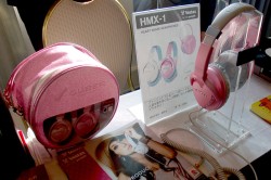 オーバーヘッドホン「HMX-1」はスワロフスキーをあしらったハート型ハウジングが目を引く。来場した女性が「かわいい〜」と注目していたのはもちろん、意外に男性が試聴する姿も見られた。こちらは量販店に加え今後は服飾ショップなどでの展開も考えているとのことだ。