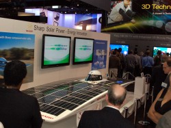 こちらでは、いわゆる“ブルーレイ内蔵AQUOS”のように、3D対応BDプレーヤーを内蔵した3D液晶テレビを参考出展。アクティブシャッター式のメガネを使用するタイプのもので、画面サイズは60インチ。UV2Aパネルを搭載し、3Dに対応させたLEDバックライトシステムも採用している。これらの技術により、明るさやコントラスト比を向上させたのだという。